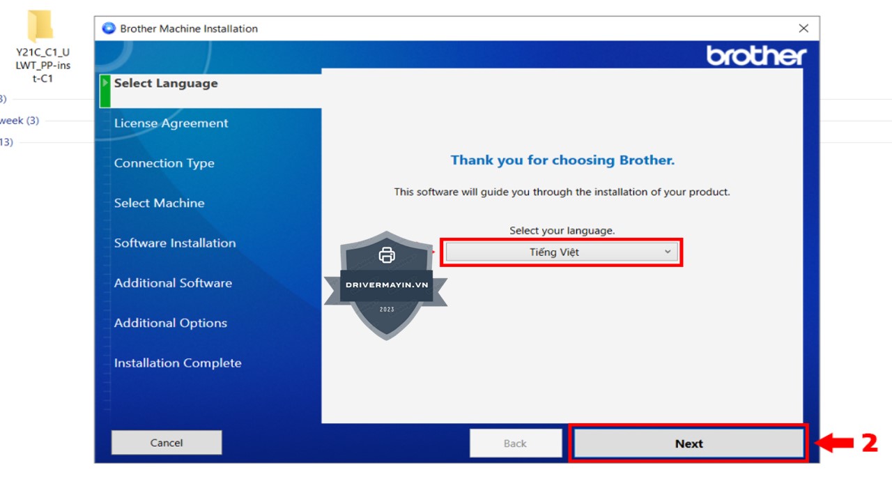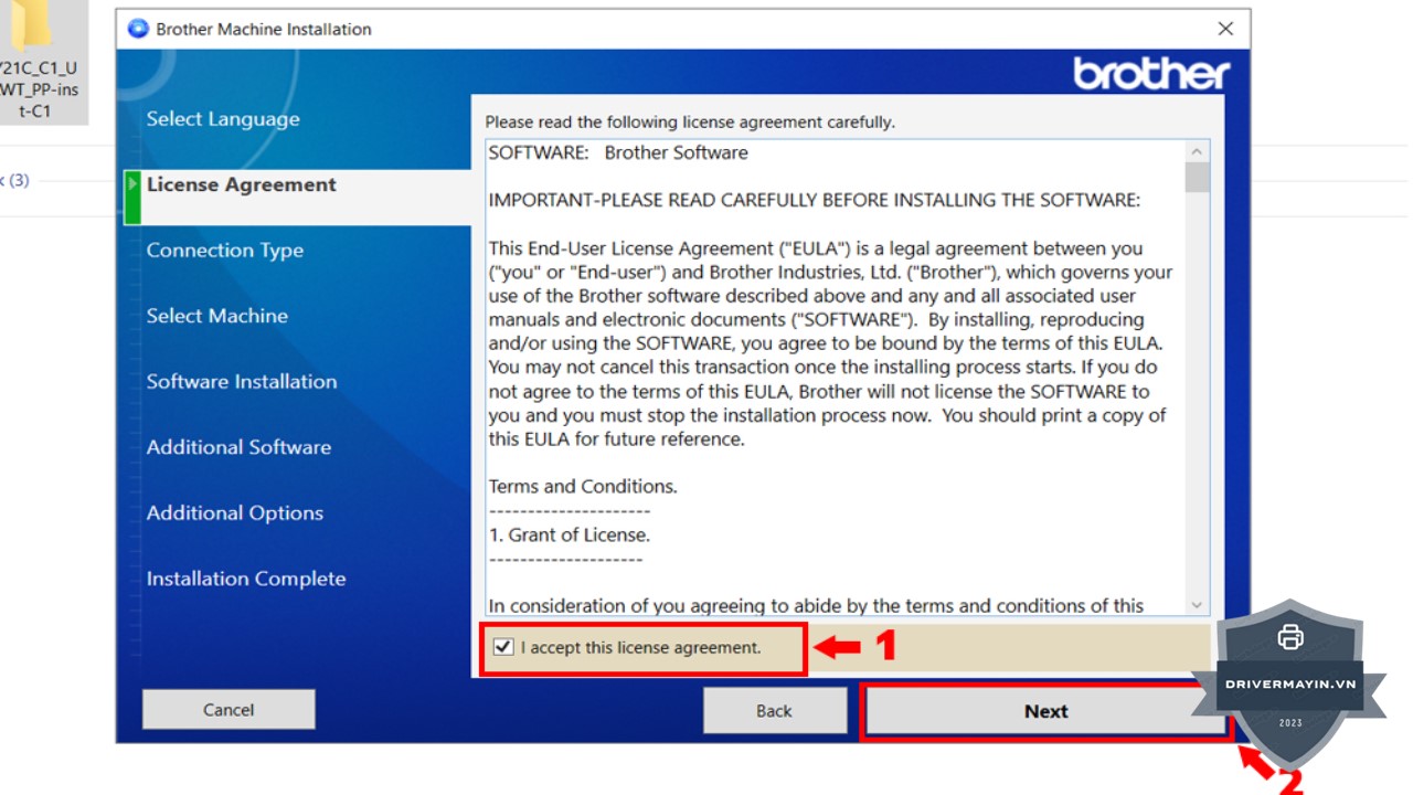 Bước 1: Truy cập trang web chính thức của Brother hoặc sử dụng đường dẫn tải từ drivermayin.vn. Sau khi tải file driver về, nhấp đúp chuột vào file cài đặt để bắt đầu quá trình cài đặt.