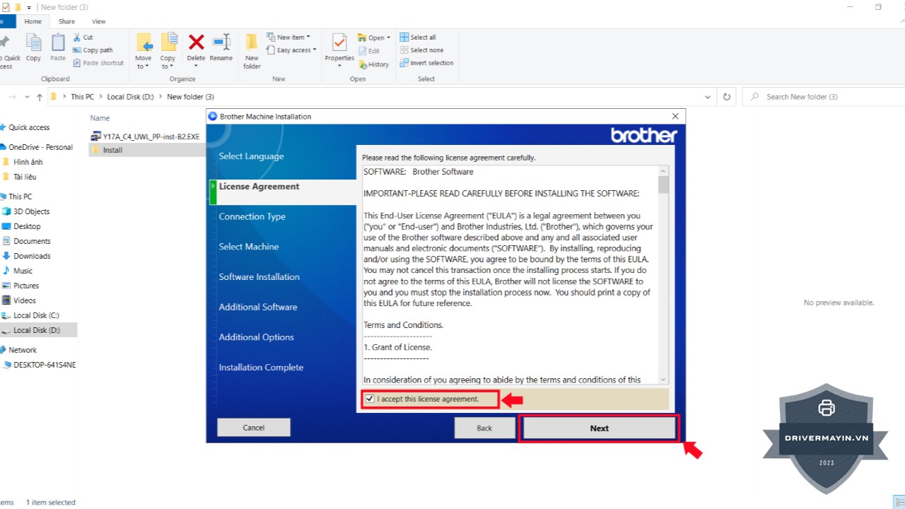 Bước 3: Đọc và tick chọn ô “I accept this license agreement” để đồng ý với các điều khoản sử dụng, sau đó nhấn Next.