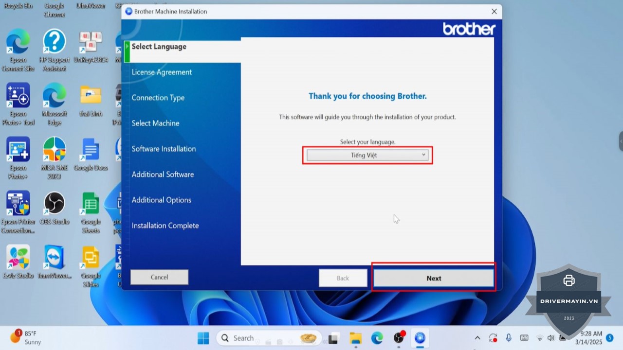Chọn ngôn ngữ Tiếng Việt: Trong phần cài đặt, chọn Tiếng Việt và nhấn Next.
