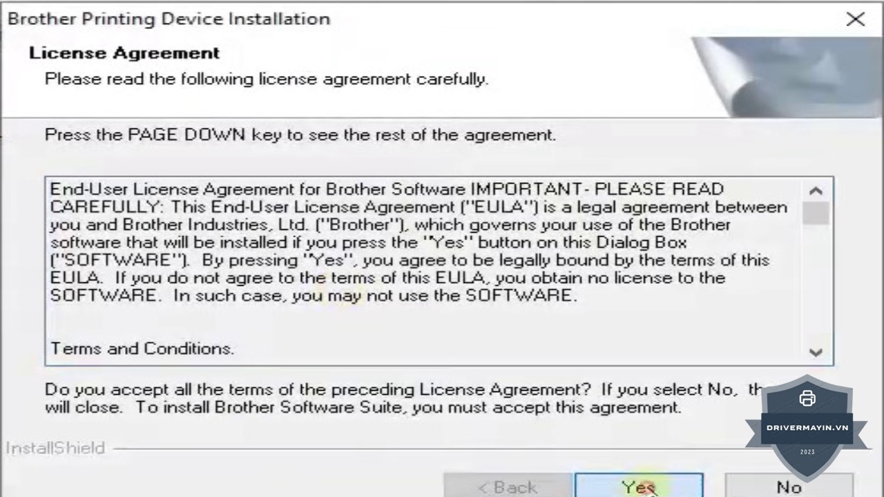 Bước 4: Chọn Yes để tiếp tục. Sau khi chọn ngôn ngữ, nhấn Yes để đồng ý với các điều khoản và tiếp tục quá trình cài đặt.