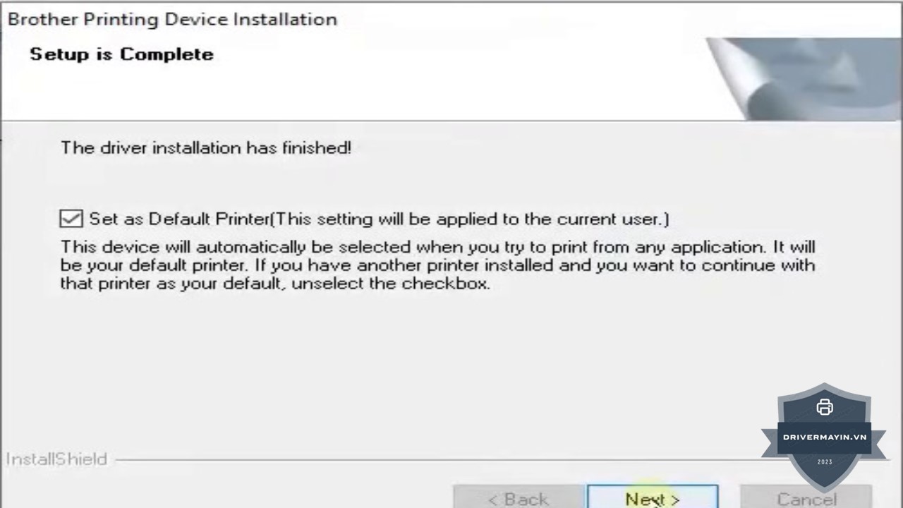 - Set as Default Printer: Tích chọn tùy chọn này nếu bạn muốn máy in Brother MFC-L2701D trở thành máy in mặc định cho các ứng dụng in ấn.