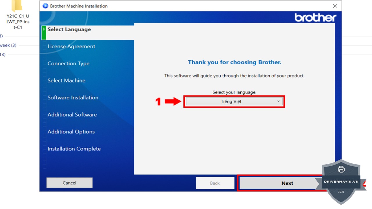 Bước 2: Chọn ngôn ngữ Tiếng Việt trong phần cài đặt và nhấn Next để tiếp tục.