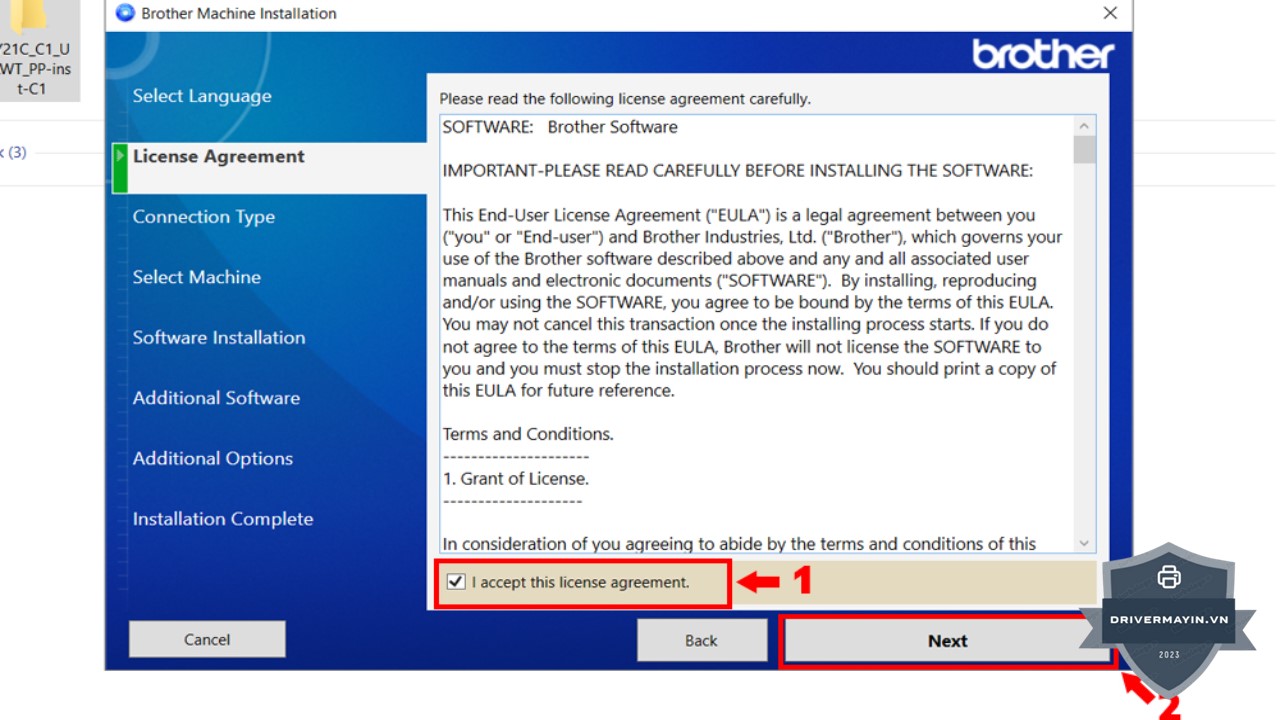 Bước 3: Đọc và tick chọn vào ô "I accept this license agreement" (Tôi đồng ý với thỏa thuận cấp phép) rồi nhấn Next.