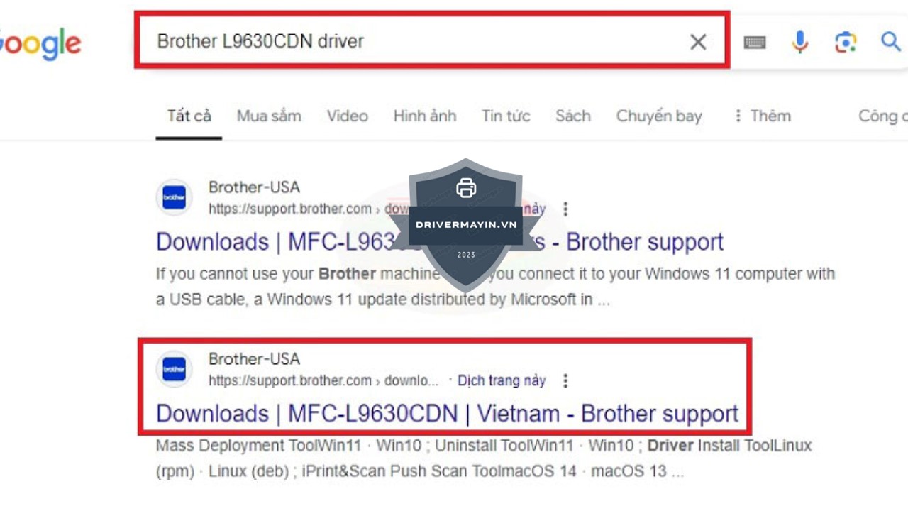 Bước 1: Truy cập vào công cụ tìm kiếm như Google, Cốc Cốc, hoặc bất kỳ công cụ tìm kiếm nào khác, và tìm kiếm từ khóa “Brother L9630CDN driver”.