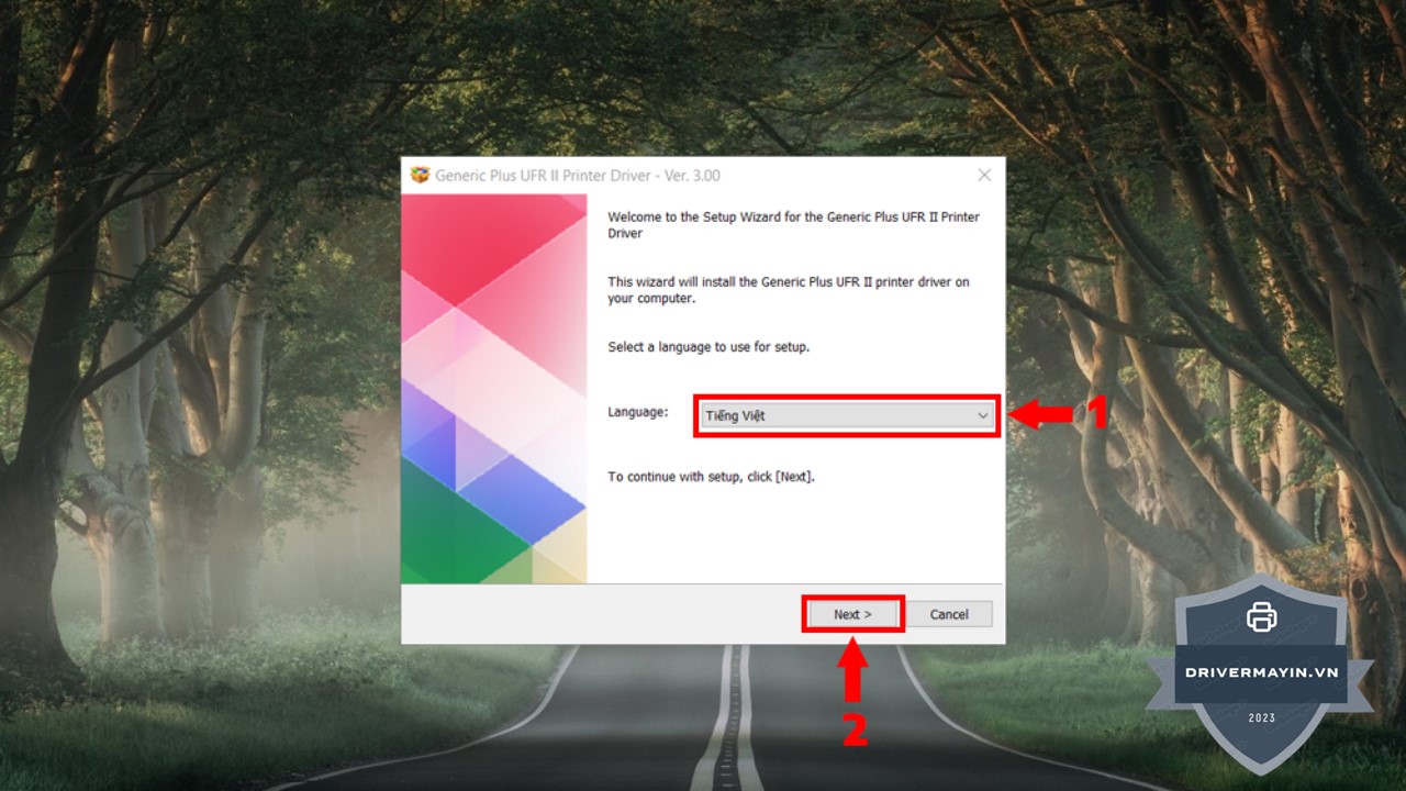 Khi cửa sổ cài đặt xuất hiện, hãy chọn ngôn ngữ Tiếng Việt và nhấn Next để tiếp tục.