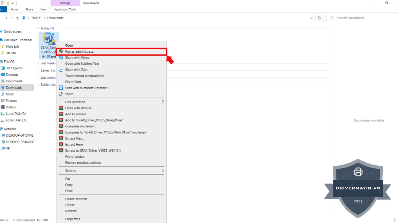 Sau khi tải xong, chuột phải vào file vừa tải về và chọn Run as administrator để mở với quyền quản trị viên.