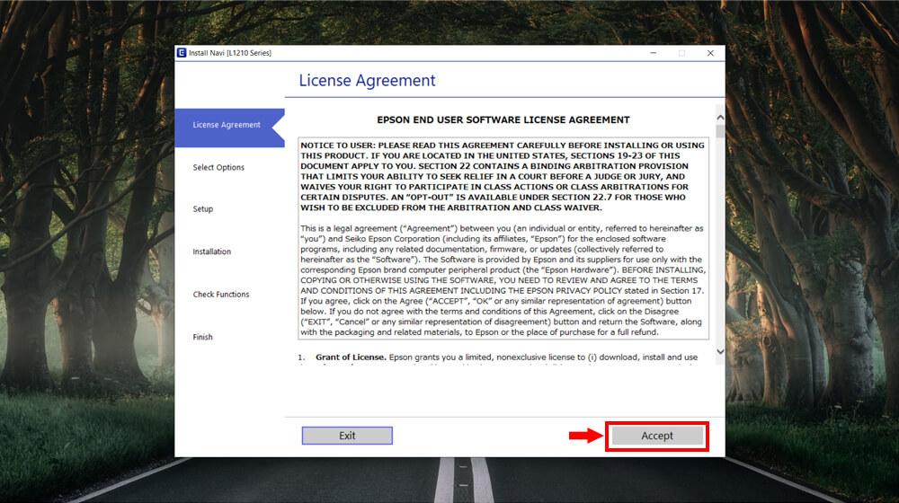 Bước 2: Khi cửa sổ cài đặt hiện lên, bạn chọn "Accept" (Chấp nhận) để đồng ý với các điều khoản và điều kiện.