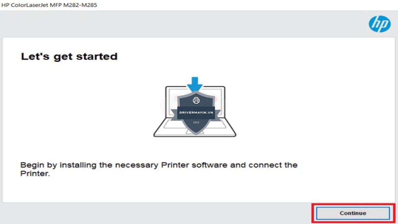 Bước 2: Hệ thống sẽ hiển thị một hộp thoại cài đặt driver HP M283FDW. Lúc này, bạn chỉ cần chọn "Continue" để tiếp tục.