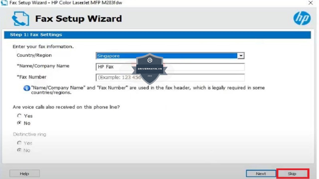 Nếu không sử dụng tính năng Fax, bạn chỉ cần chọn "Skip".