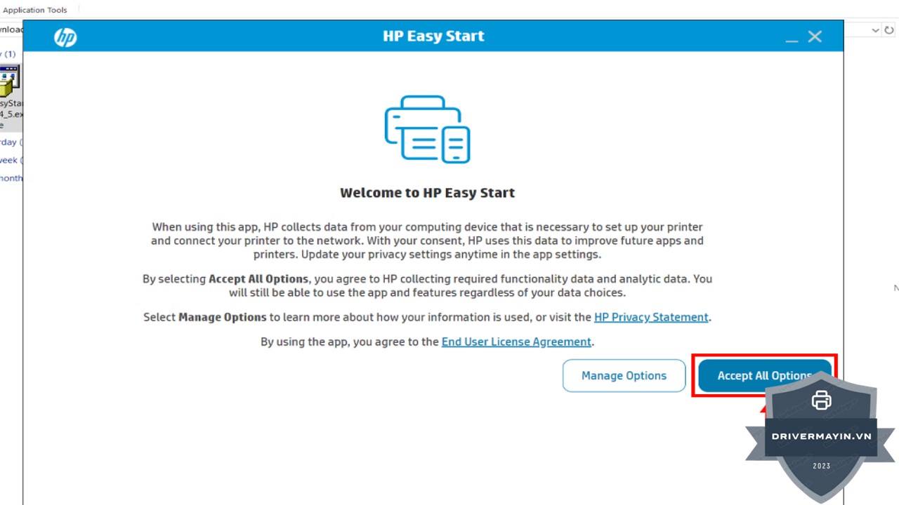 Bước 2: Khi bảng thông báo xuất hiện, chọn Accept All Options để đồng ý với tất cả các lựa chọn cài đặt và tiếp tục.