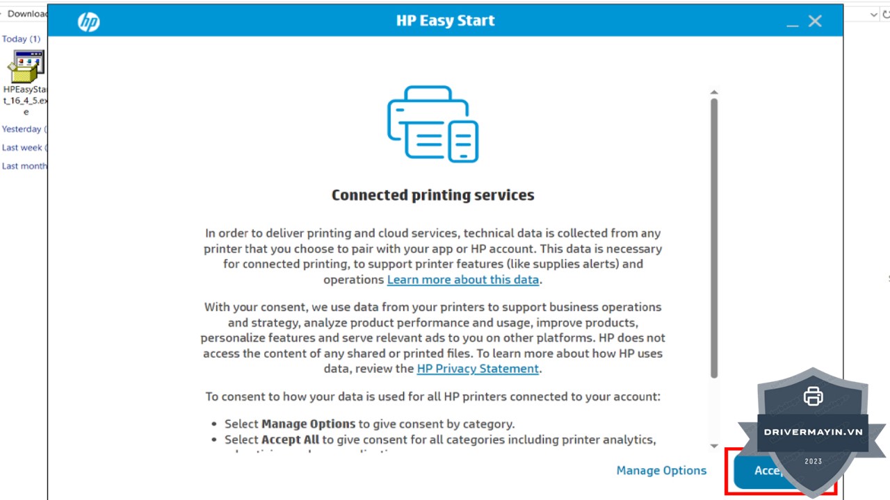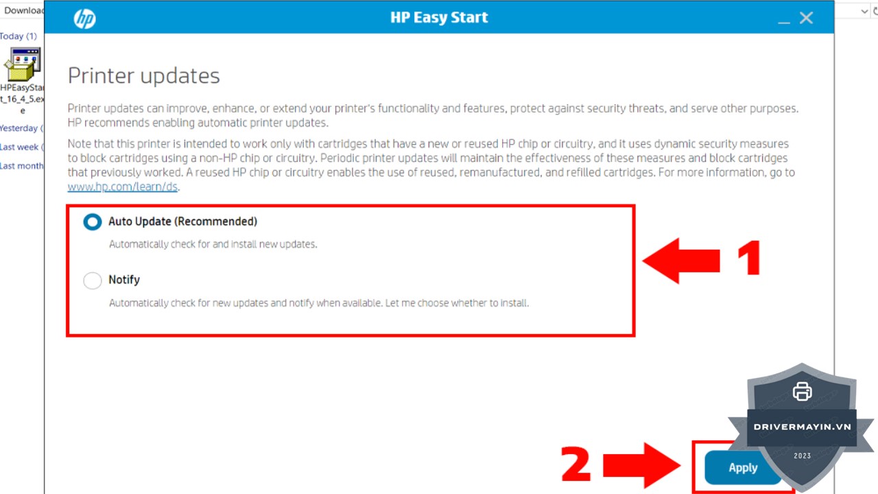 Bước 1: Nhấn đúp chuột vào file driver mà bạn vừa tải về từ trang web HP để bắt đầu quá trình cài đặt.