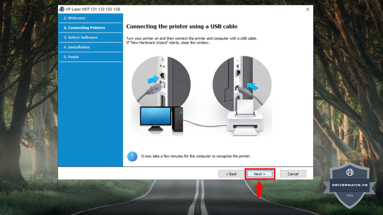Máy in HP Laser MFP 137fnw hỗ trợ cả kết nối qua USB và Wi-Fi, vì vậy bạn cần chọn đúng kiểu kết nối mà bạn đang sử dụng trước khi cài đặt driver. Nếu bạn chọn kết nối qua USB, hãy đảm bảo cáp USB được kết nối chặt chẽ giữa máy tính và máy in. Nếu bạn kết nối qua Wi-Fi, hãy đảm bảo máy in của bạn đã được kết nối vào mạng Wi-Fi mà máy tính cũng đang sử dụng.