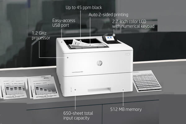 - Tốc độ in nhanh chóng: Máy in HP LaserJet Enterprise M507X 1PV88A có tốc độ in lên tới 45 trang/phút, giúp bạn hoàn thành công việc in ấn nhanh chóng, tiết kiệm thời gian cho các tác vụ công việc bận rộn.