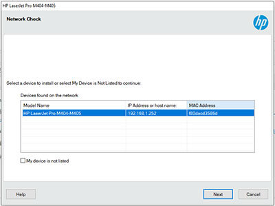 Cài đặt cho các máy in khác: Nếu bạn đang cài đặt máy in HP M404DW cho các máy tính khác trong mạng, chỉ cần tích chọn ô vuông "The device is already connected to my wireless network" và tiếp tục các bước cài đặt như trên.