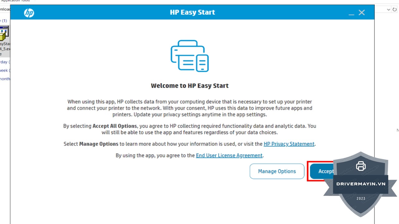 Bước 2: Khi cửa sổ thông báo hiện lên yêu cầu bạn đồng ý với các điều khoản sử dụng, bạn chọn Accept All Options để đồng ý với tất cả các tùy chọn cài đặt và tiếp tục quá trình cài đặt. Điều này đảm bảo rằng bạn sẽ không bỏ qua bất kỳ bước quan trọng nào trong quá trình cài đặt.