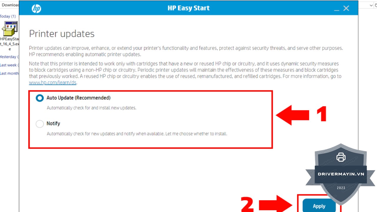 Bước 6: Tiếp theo, bạn sẽ thấy cửa sổ yêu cầu bạn chọn các tùy chọn cài đặt khác, như kết nối mạng hay các tính năng bổ sung cho máy in của bạn. Hãy kiểm tra lại các tùy chọn cài đặt một lần nữa và nhấn Apply để bắt đầu quá trình cài đặt. Lúc này, phần mềm sẽ tự động cài đặt driver và cấu hình các thiết lập cần thiết cho máy in của bạn.