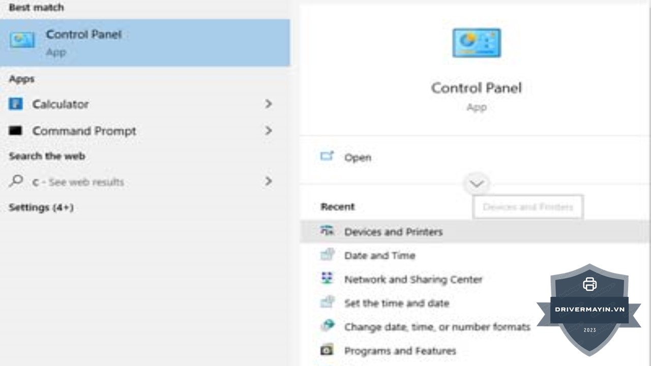 Truy cập Control Panel → Devices and Printers