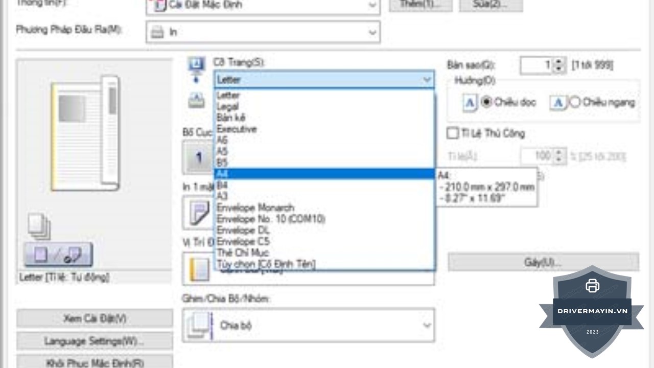 Tại mục Paper Size, đổi từ Letter sang A4