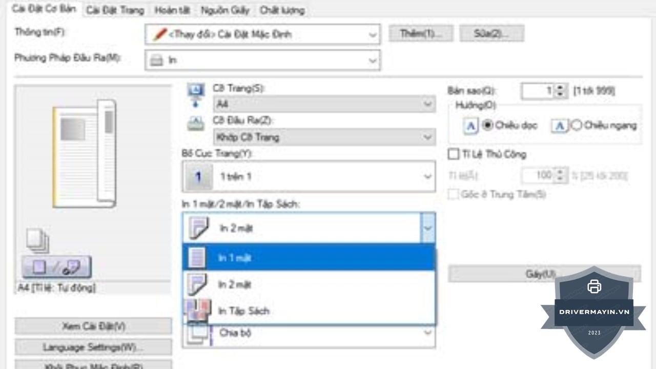 Ngoài ra, nếu không muốn in hai mặt mặc định, quý khách có thể chuyển sang Print 1 side.