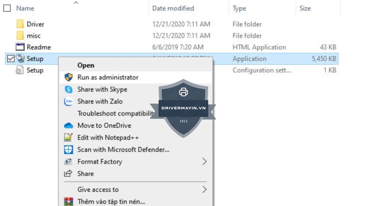 Bước 1: Giải nén và chuẩn bị file driver