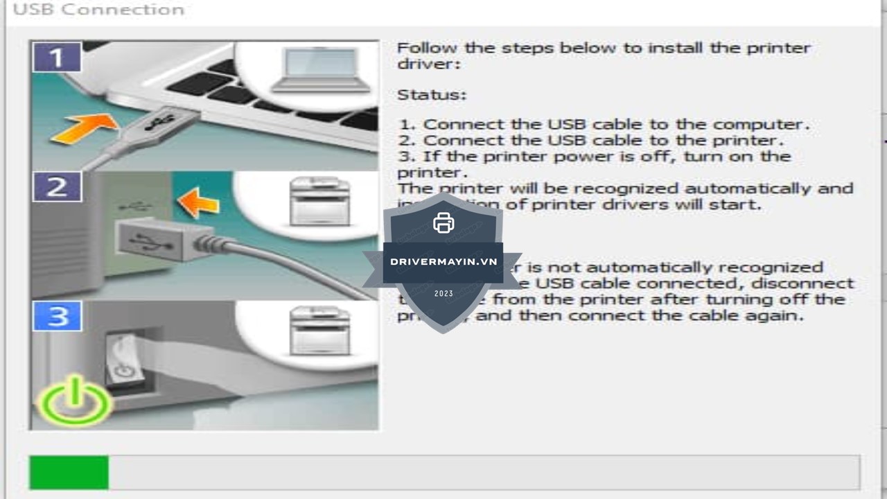 Hệ thống sẽ tự động cài đặt driver và cấu hình các thông số cần thiết để máy in hoạt động đúng cách. Quá trình này chỉ mất vài phút, bạn vui lòng chờ cho đến khi hoàn tất.