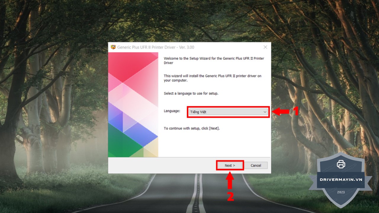Trong cửa sổ cài đặt, chọn Tiếng Việt và nhấn Next để tiếp tục.