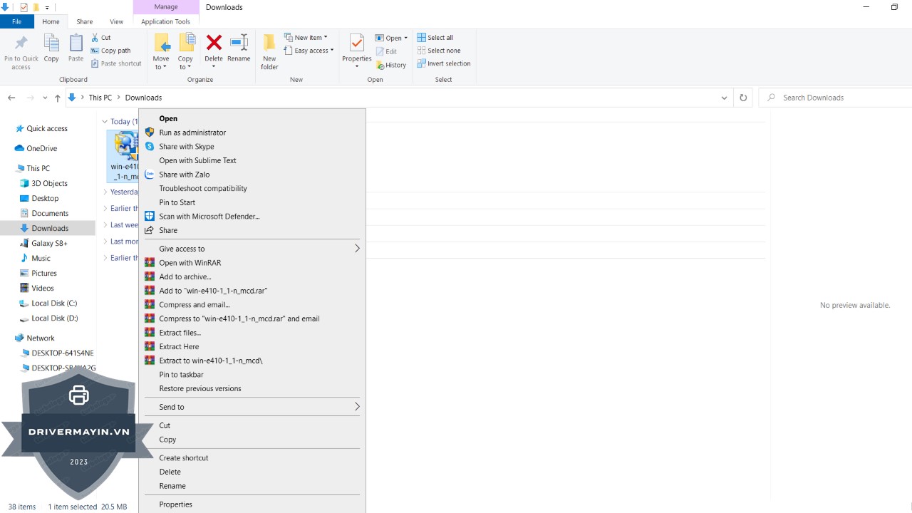 Bước 1: Nhấp chuột phải vào file driver vừa tải về, sau đó chọn Run as administrator để chạy chương trình cài đặt với quyền quản trị viên. Thao tác này giúp quá trình cài đặt diễn ra suôn sẻ và tránh lỗi do thiếu quyền hệ thống.