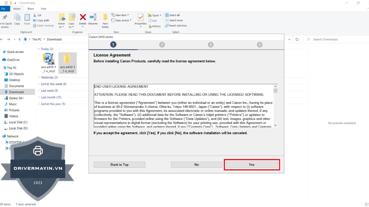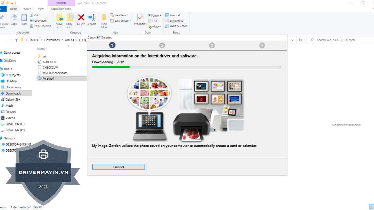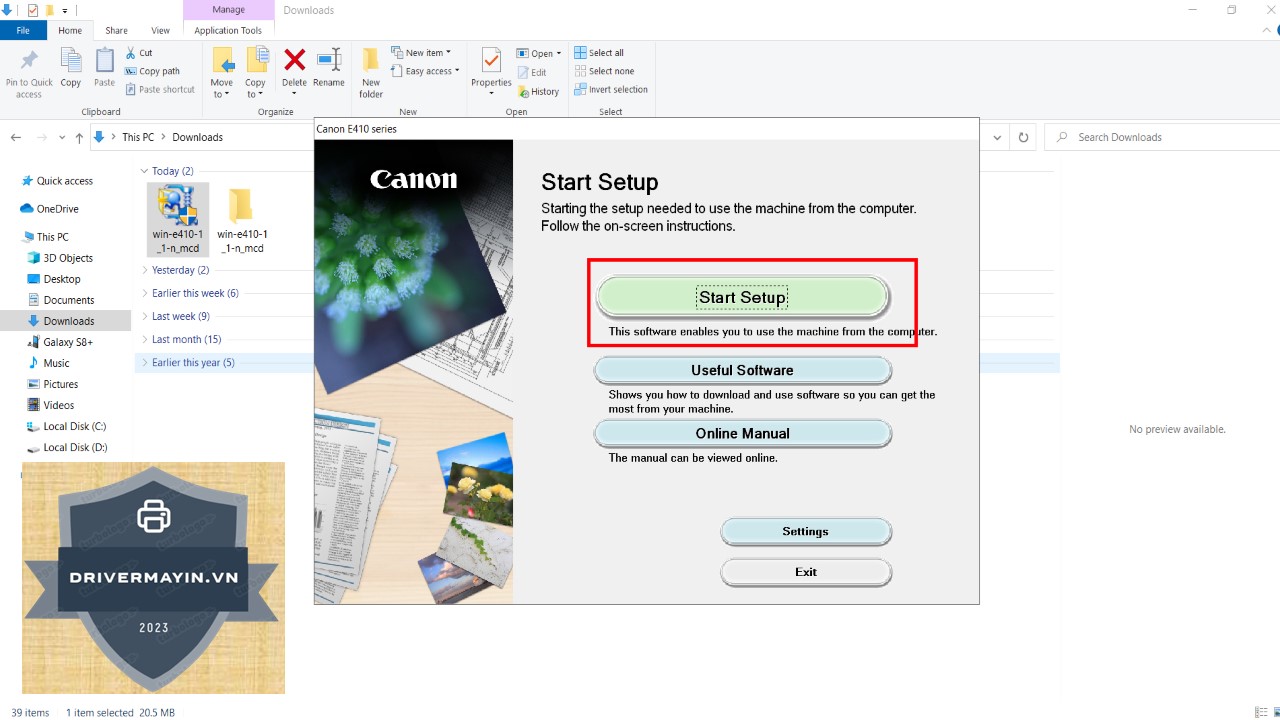 Sau khi tải file cài đặt driver Canon E410 về máy, bạn có thể thực hiện lần lượt các bước sau: