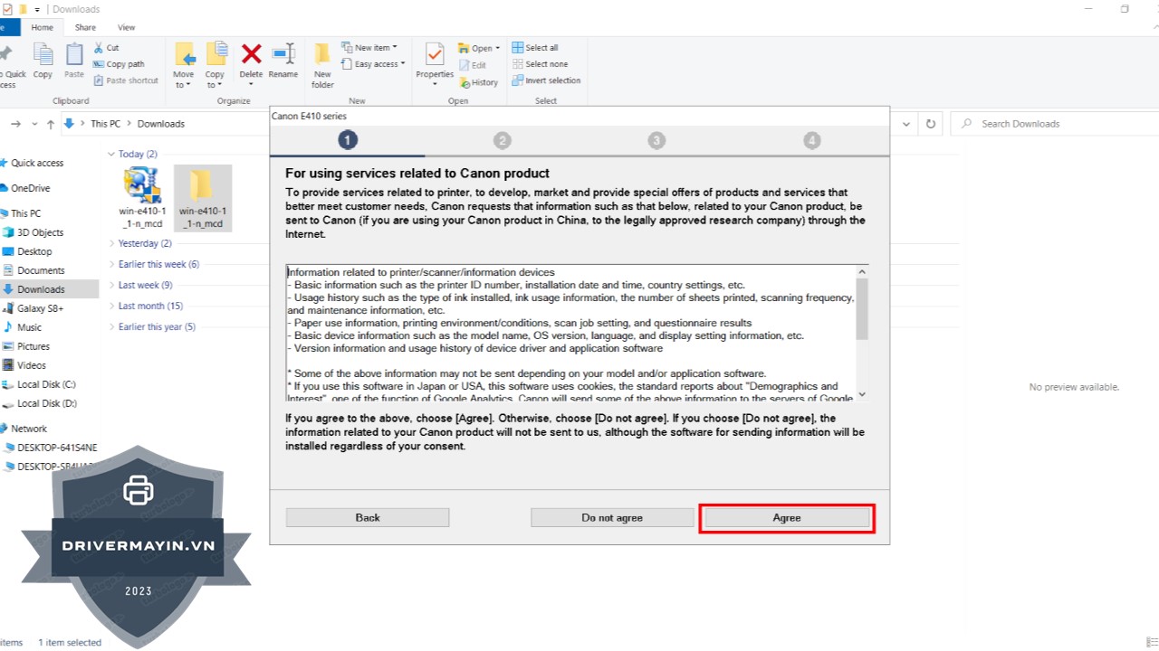 Bước 5: Đọc và đồng ý với các điều khoản sử dụng của Canon bằng cách chọn Agree.