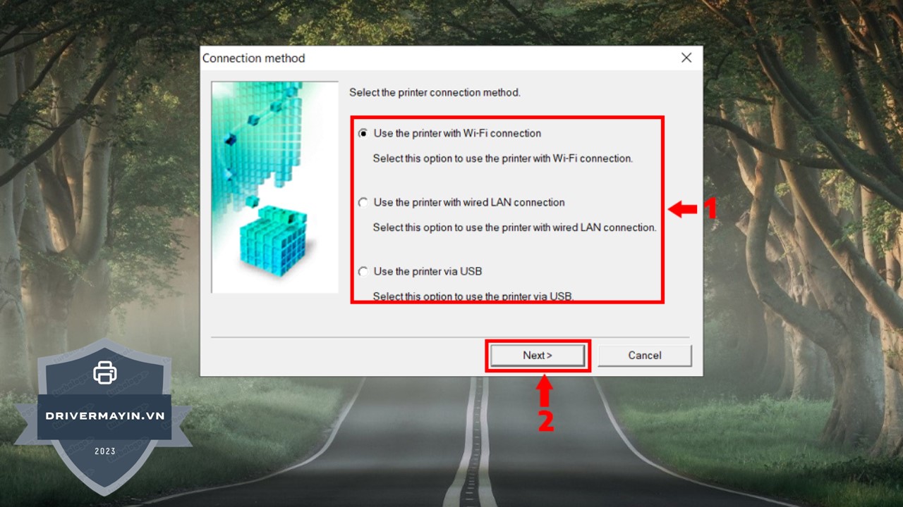 Bước 5: Chọn đúng model máy in Canon G5070 mà bạn đang sử dụng, sau đó nhấn Next.