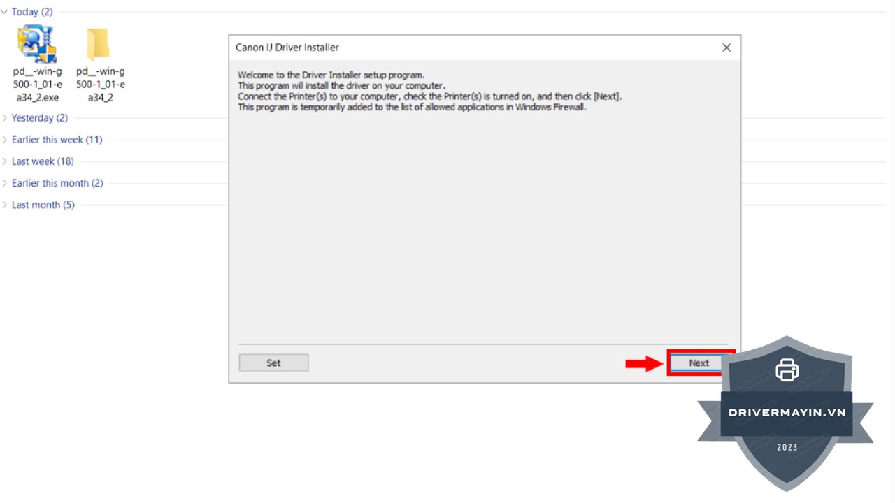 Bước 1: Sau khi tải driver Canon phù hợp về máy tính, bạn click đúp chuột vào file vừa tải để bắt đầu quá trình cài đặt driver máy in Canon.