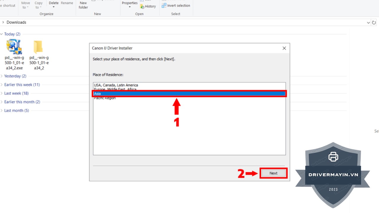Bước 3: Tại phần lựa chọn khu vực, bạn chọn Asia, sau đó nhấn Next nhằm đảm bảo driver tương thích tốt nhất với khu vực sử dụng.