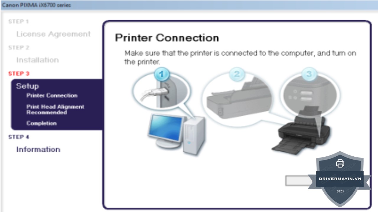 Bước 4: Kết nối cáp USB từ máy in đến máy tính và bật nguồn máy in. Quá trình cài đặt sẽ diễn ra tự động, thường mất khoảng 2 phút.