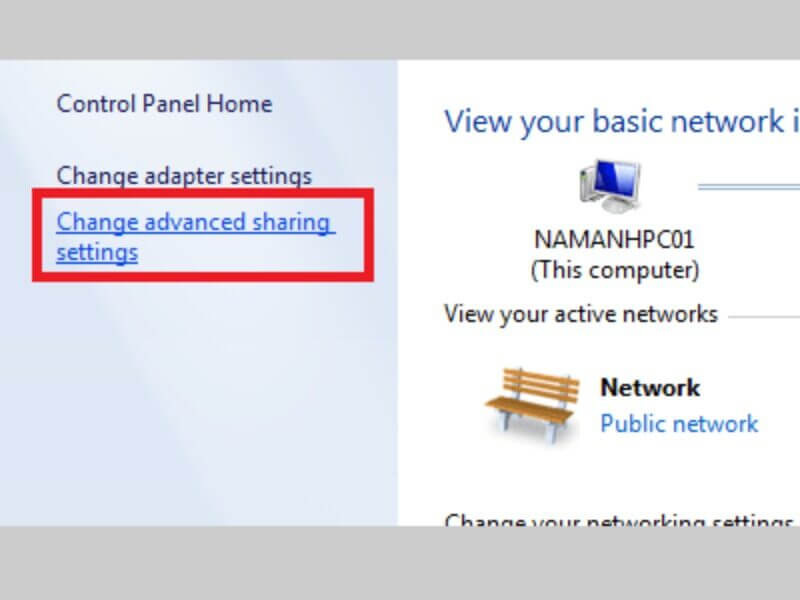 Trong giao diện Network and Internet, chọn Change advanced sharing settings ở danh sách bên trái.