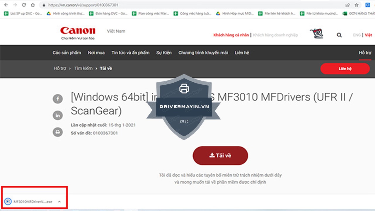 Bước 2: Tải Driver Canon MF3010 phù hợp