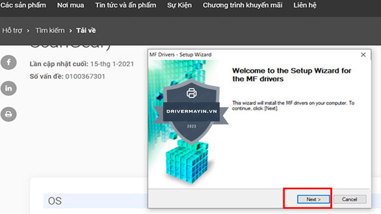 Sau khi tải về, bạn nhấp đúp chuột để chạy file Driver Canon MF3010. Khi hộp thoại Setup Wizard xuất hiện, nhấn Next để bắt đầu quá trình cài đặt.