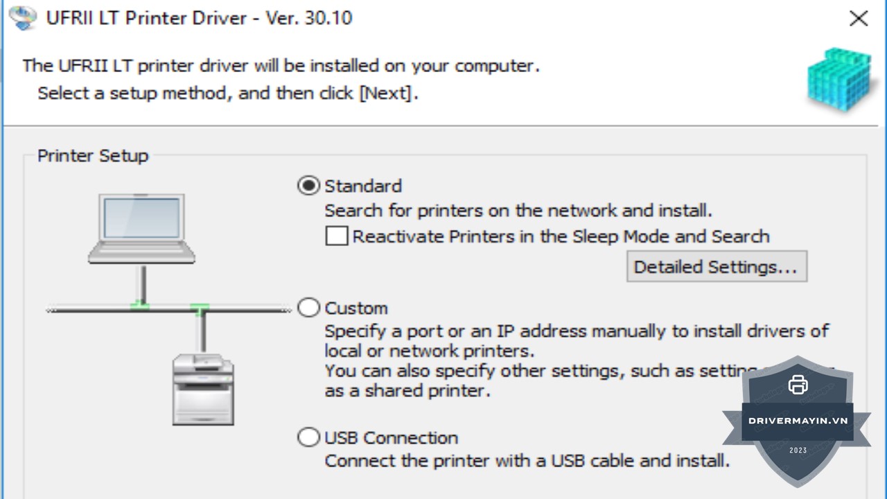 Driver Canon LBP 913W cho phép bạn kết nối máy in với máy tính qua hai phương thức: