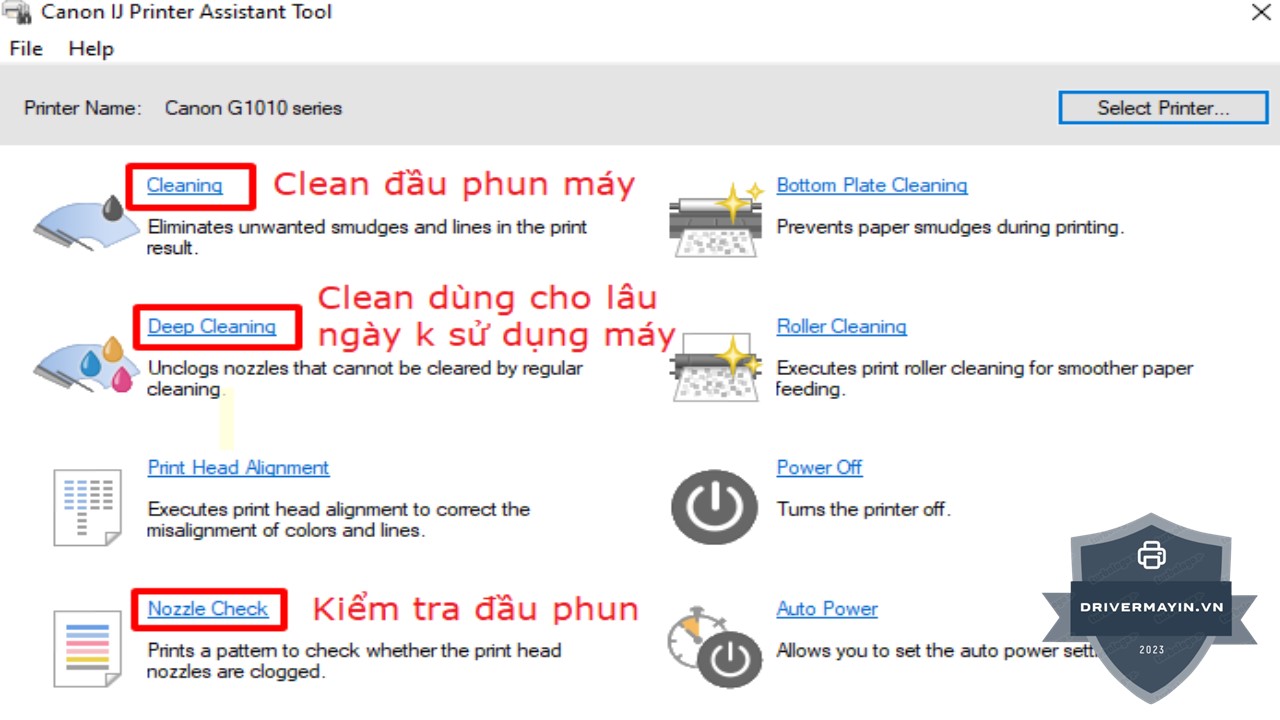 Trong trường hợp bản in ra mất màu hoặc mất nét, bạn cần tiến hành làm sạch đầu phun (Cleaning):