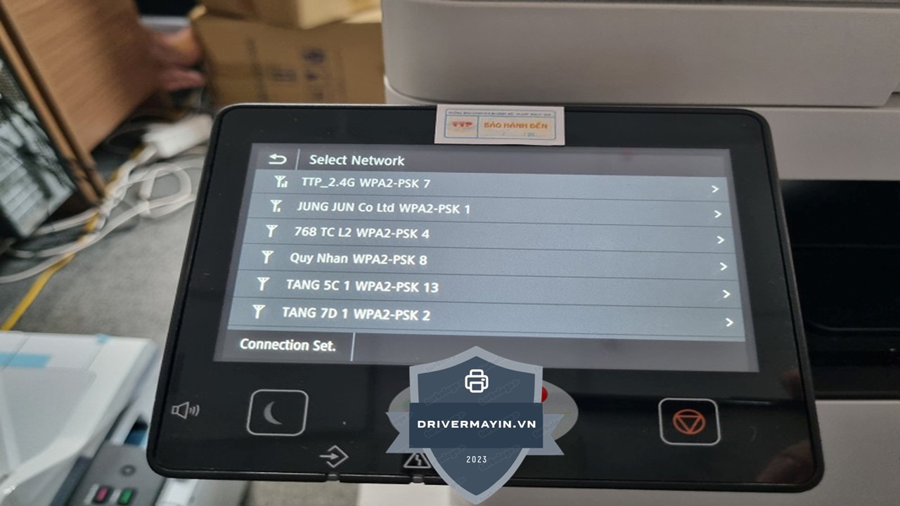 Lúc này, máy in sẽ bắt đầu dò tìm các mạng WiFi khả dụng trong khu vực.
