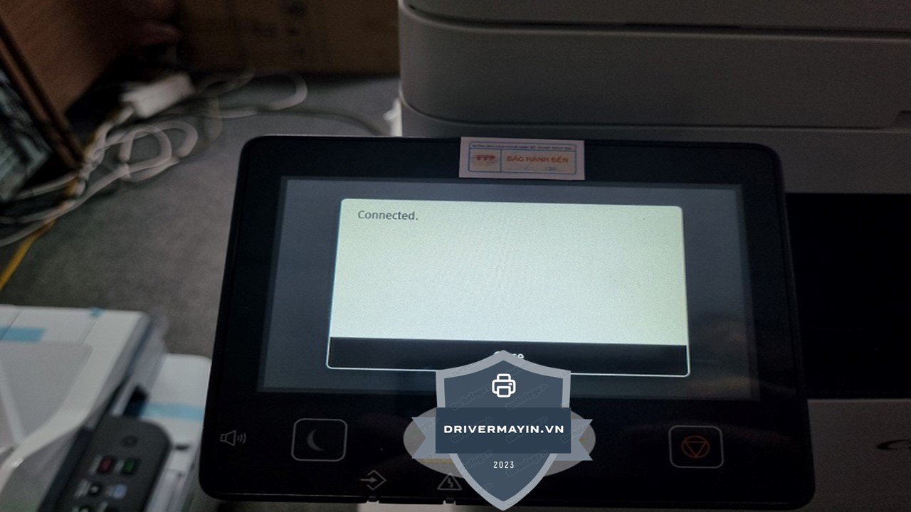 Nếu mật khẩu chính xác, máy in sẽ tiến hành kết nối và màn hình hiển thị trạng thái “Connected”. Khi thấy thông báo này, bạn nhấn “Close” để hoàn tất quá trình kết nối WiFi cho máy in Canon MF462DW.