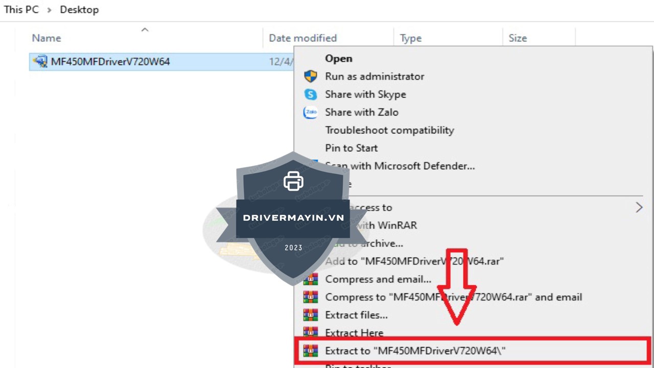 Sau khi tải Driver về máy, bạn truy cập vào thư mục chứa file. Nhấn chuột phải vào file Driver và chọn “Extract to…” để tiến hành giải nén. Sau khi giải nén, bạn sẽ thấy một thư mục mới chứa các file cài đặt.