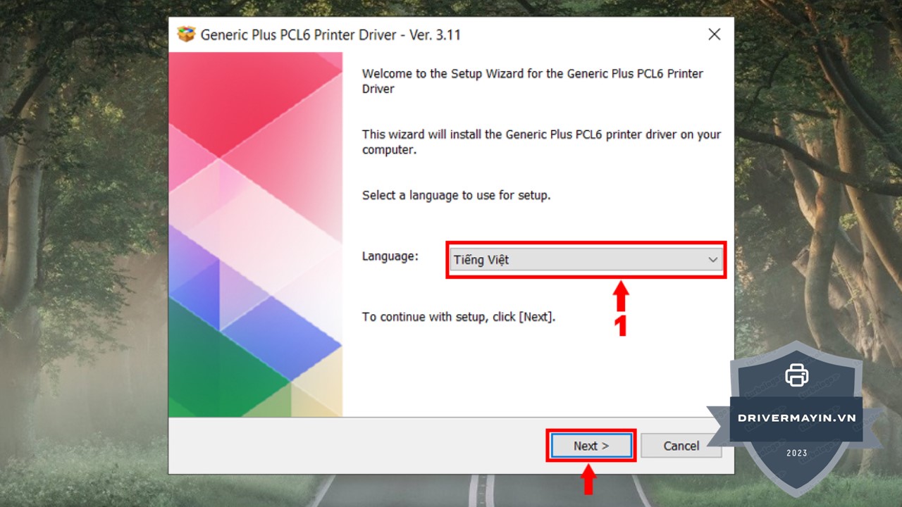 Bước 3: Chọn ngôn ngữ Tiếng Việt, sau đó nhấn Next để tiếp tục.
