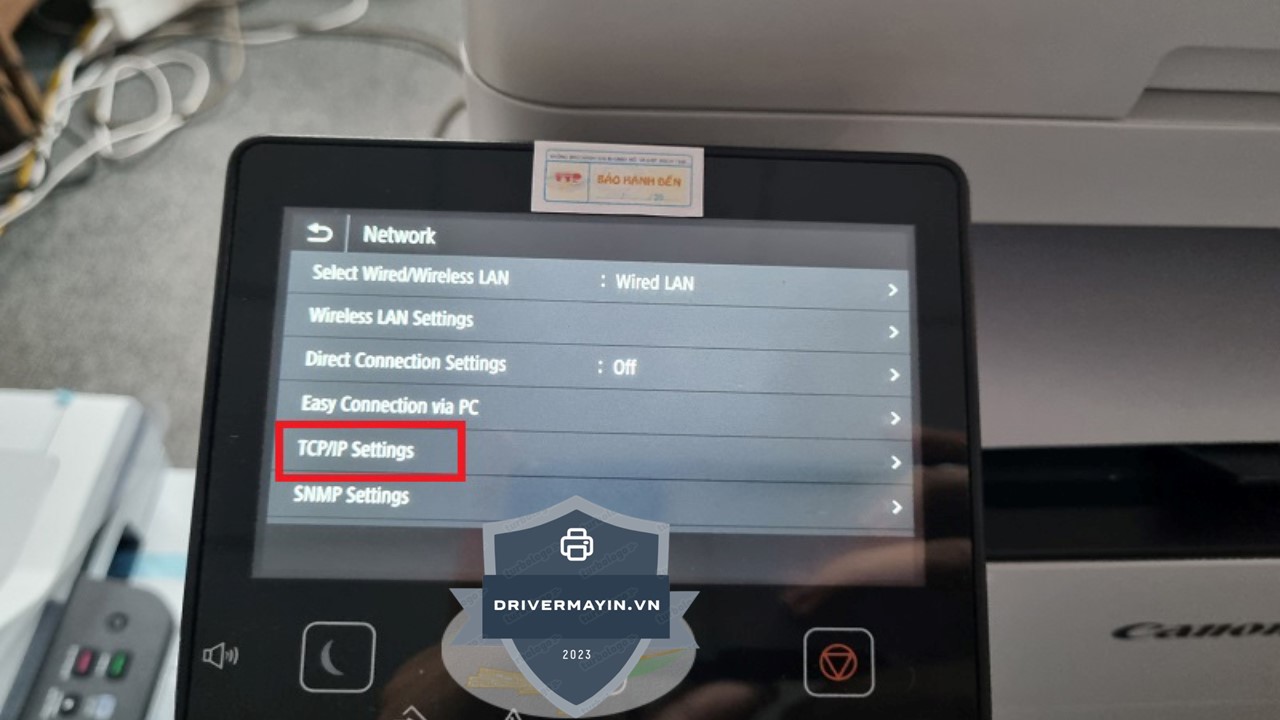 Trong phần Network, bạn tiếp tục chọn TCP/IP. Đây là mục cho phép bạn cấu hình địa chỉ IP cho máy in Canon MF462DW.