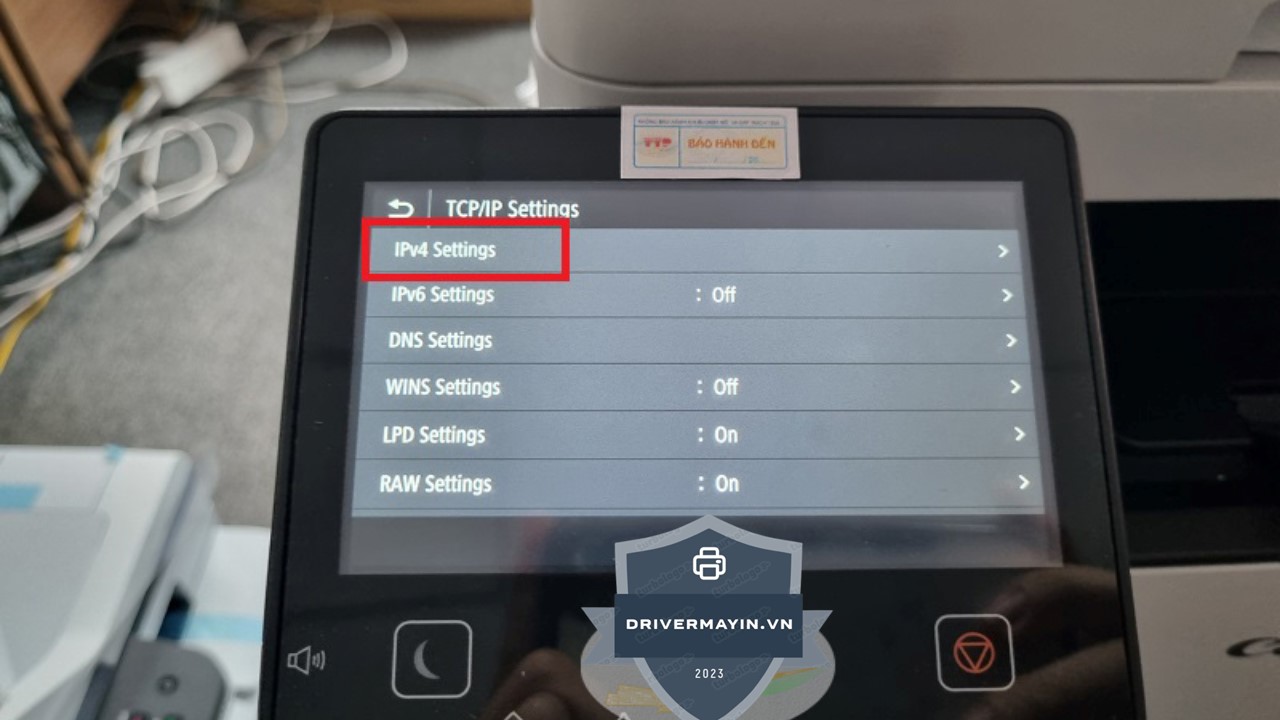 Tại giao diện TCP/IP, bạn chọn IPv4 Settings để tiến hành thiết lập địa chỉ IP tĩnh (IPv4) cho máy in.