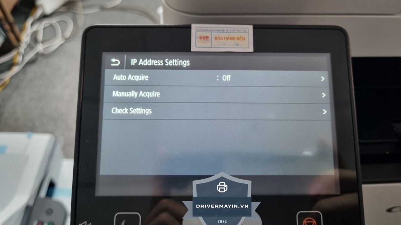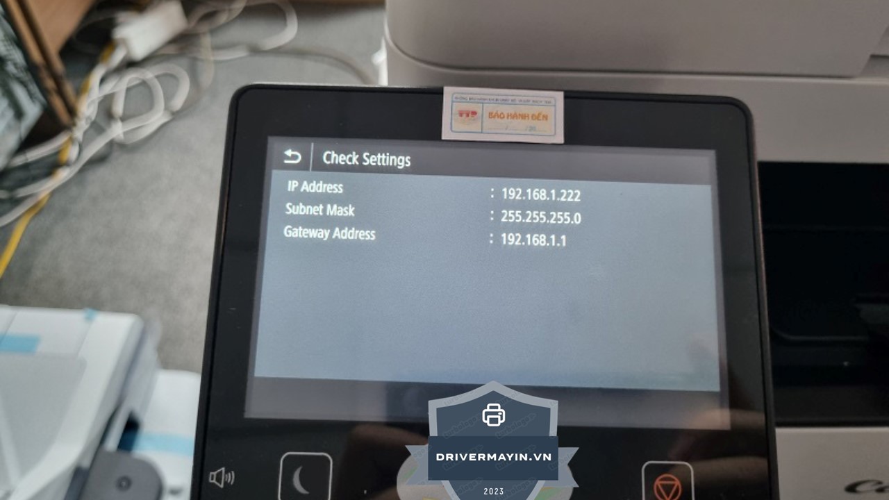 Cuối cùng, bạn chọn mục Check Settings để kiểm tra lại địa chỉ IP vừa thiết lập. Nếu thông tin hiển thị chính xác, quá trình thiết lập IP tĩnh cho máy in Canon MF462DW đã hoàn tất.
