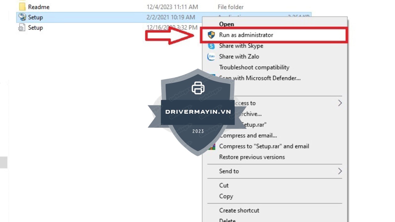 Bước 2: Chạy file Setup.exe với quyền Admin