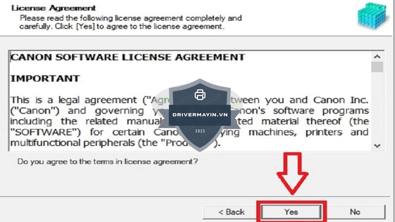 Tiếp theo, hệ thống sẽ hiển thị các điều khoản và chính sách của Canon. Bạn chọn “Yes” để đồng ý và chuyển sang bước kế tiếp.