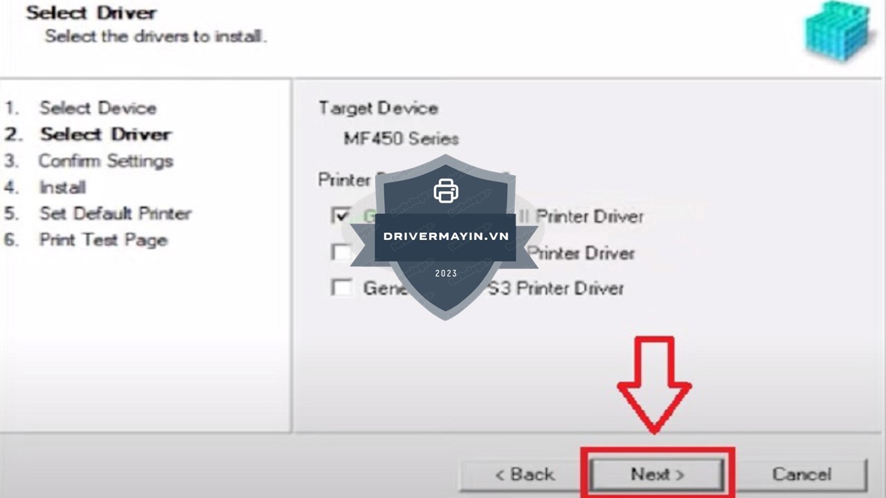 Hệ thống sẽ đề xuất phiên bản driver mặc định là: Generic Plus UFR II Printer Driver