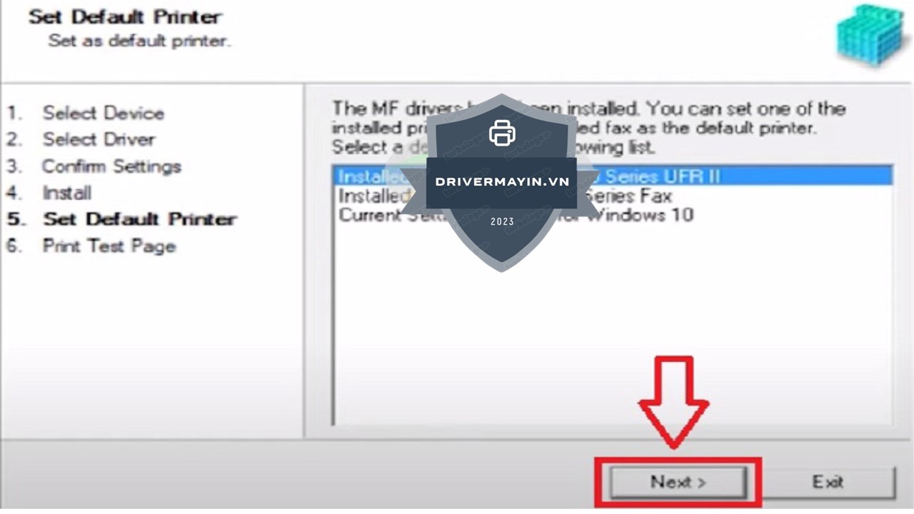 Khi được hỏi có muốn đặt Canon MF460 Series làm máy in mặc định hay không, bạn chọn “Next” nếu đồng ý.