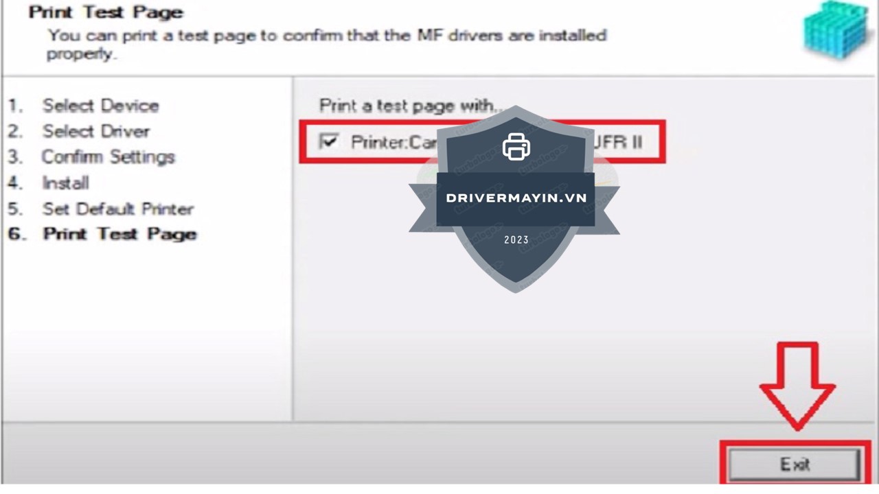 Cuối cùng, bạn nhấn “Exit” để kết thúc quá trình cài đặt. Hệ thống sẽ tiến hành in test để kiểm tra máy in đã hoạt động bình thường hay chưa.